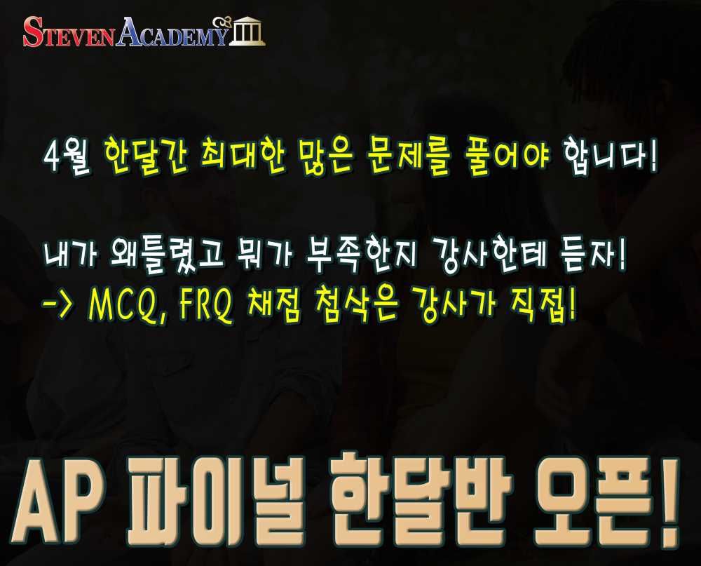 5월 AP 시험 대비 파이널 실전 문제 풀이반 개강!