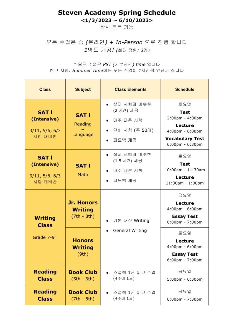 VOD 인강 https://onlinesteven.com/ (과목당 $99 / 9만9천원 무제한 반복 수강)