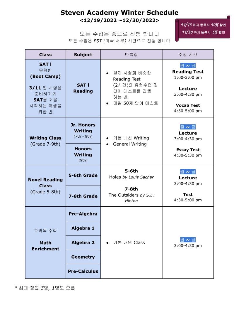 겨울 방학 정규반 오픈! 사전 등록 할인 이벤트!