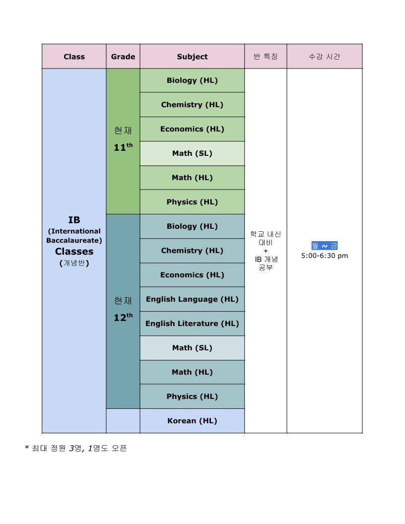▷ 교과 수학, AP 전 과목, IB 전 과목 (개념반)