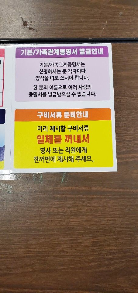 * 수수료는 카드로 결제가 안되고 현금으로만 수령합니다.(단, 여권의 경우 현금 및 수표도 가능)