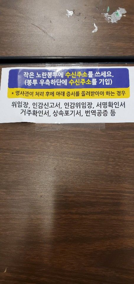 * 순회영사시 공증 업무는 즉석에서 처리되지 않습니다.