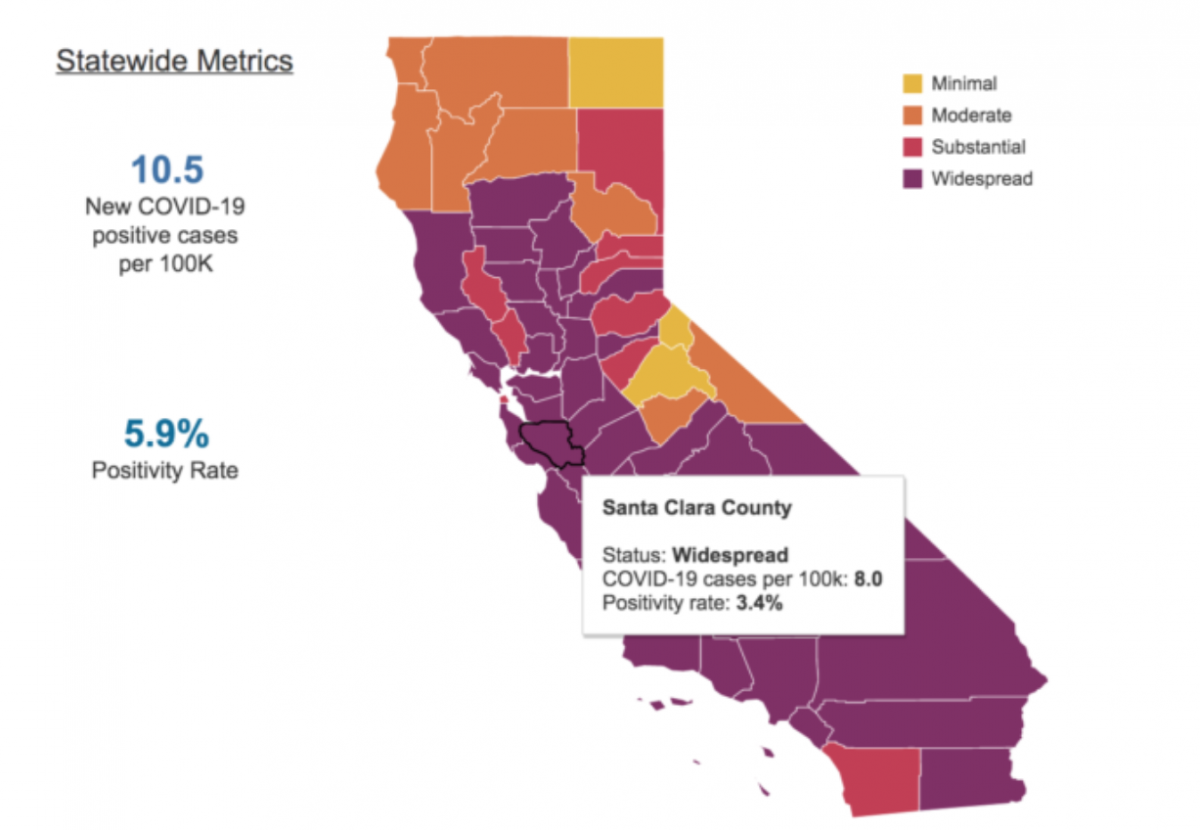 CA, 영업재개를 위한 4가지 색깔의 “코로나 티어 시스템” 발표