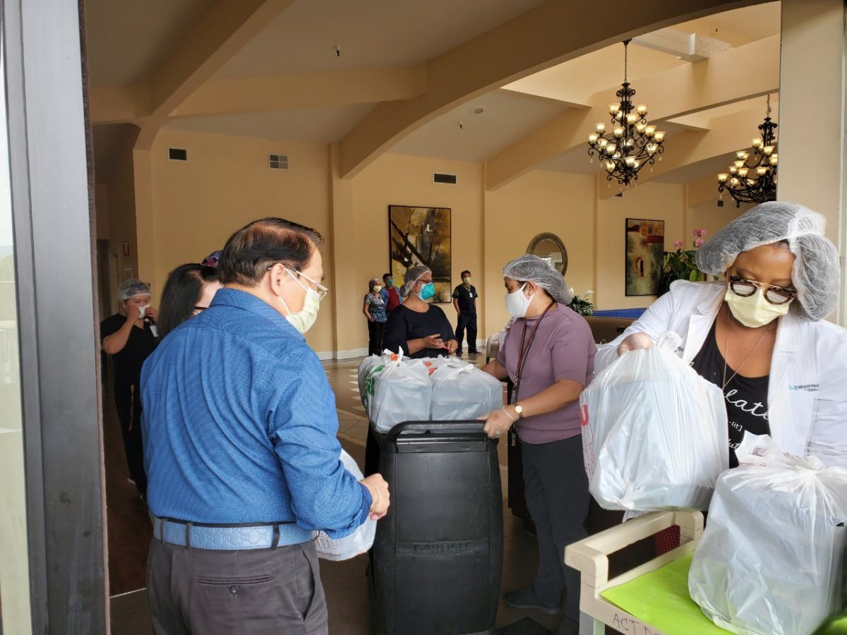 4월29일(수) 한인회 임원들은 두팀으로 나누어 한인회관에서는 마스크를 배포하고, 다른팀은 스카이라인 요양병원에 두차례에 걸쳐 한식 도시락 173인분(점심95, 저녁 78)을 배달하였다.