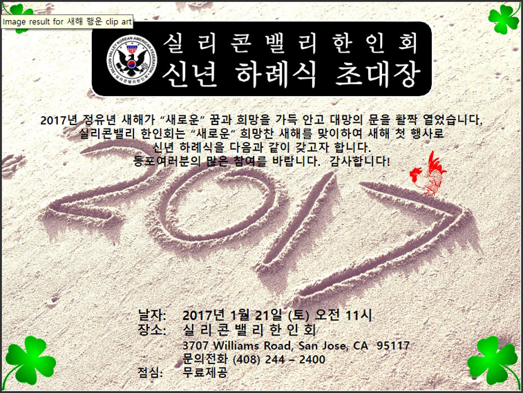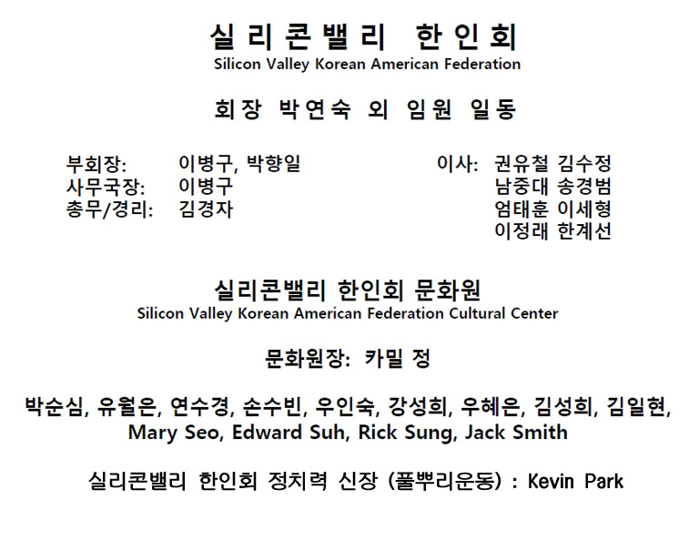 실리콘밸리 한인회 2016년 송년의 밤 행사 (12/16)는