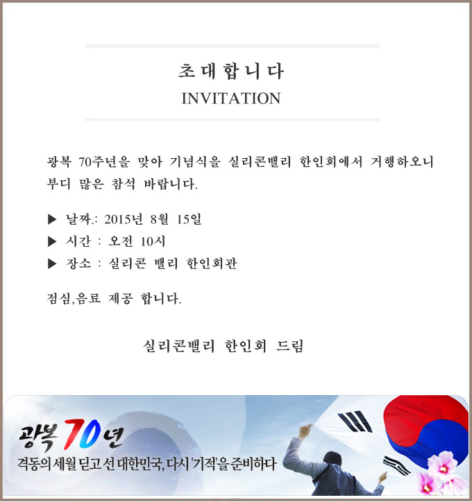 제70회 광복절 기념식에 초대합니다.