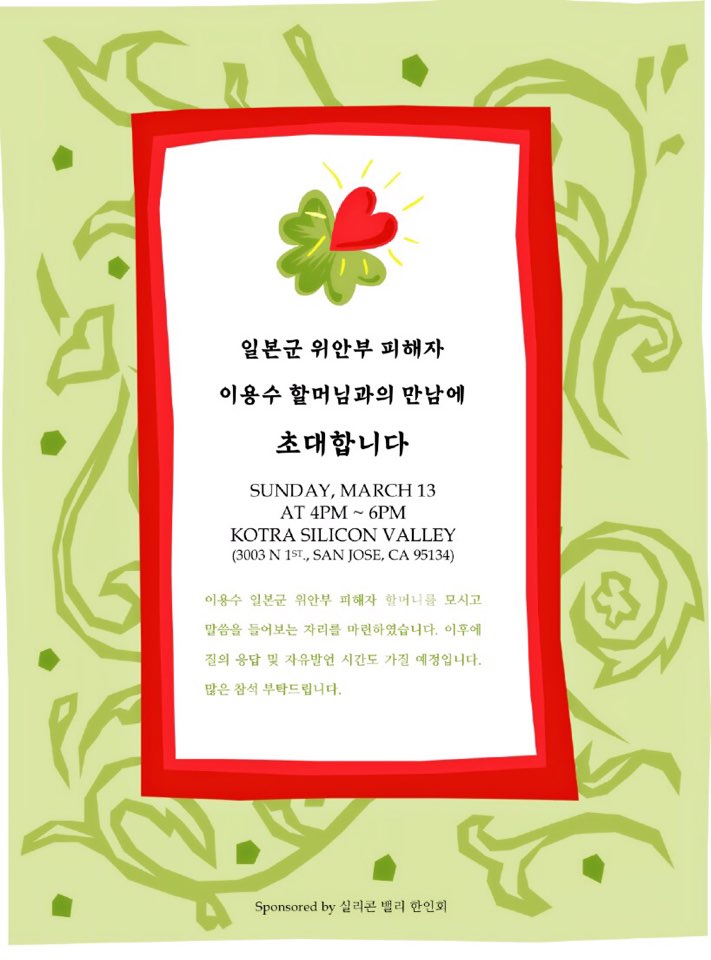 실리콘벨리 한인회가 위안부 피해자 이용수 할머님과 함께 하는 자리를 마련 합니다.